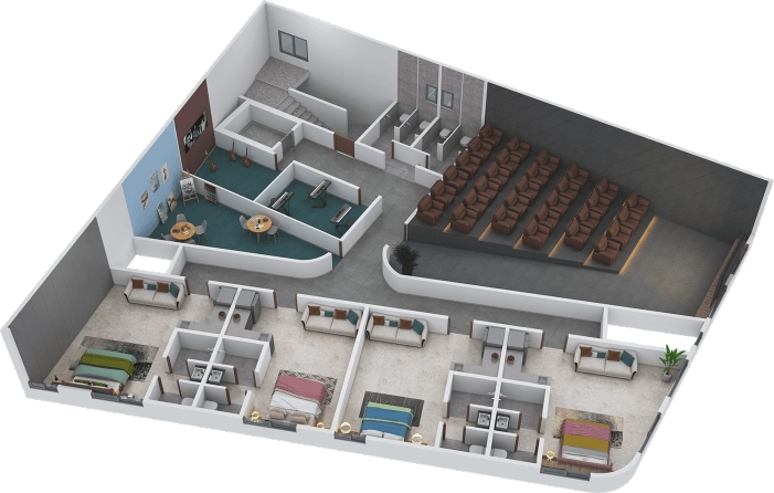 At Sukhwani Skylines, your lifestyle just begins instantly. With over 40,000 sq. ft. of central leisure space, a dedicated amenity tower spanning five levels, and zones curated for every age group, this is not just a ready premium offering designed around your relaxation. No delays. No pending work. Just open doors, active spaces, and a complete lifestyle.